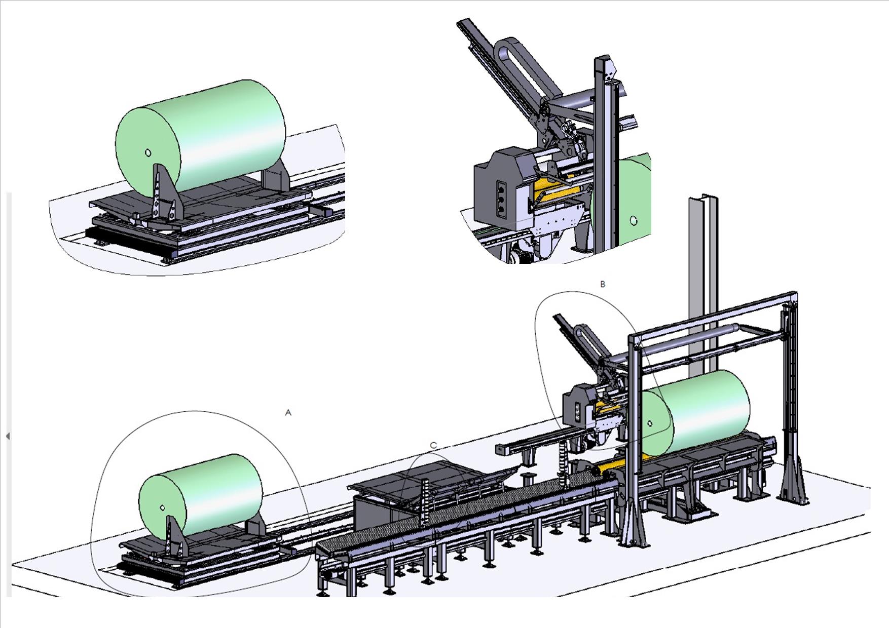 je suis à la recherche d"une filmeuse de bobine de papier avec un diamètre maximum de 110 0 mm et une laize maximum de 1200 mm.
