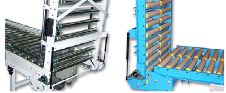 portillons relevables peuvent être à rouleaux gravitaires ou tapis suivant la nature du produit à véhiculer.