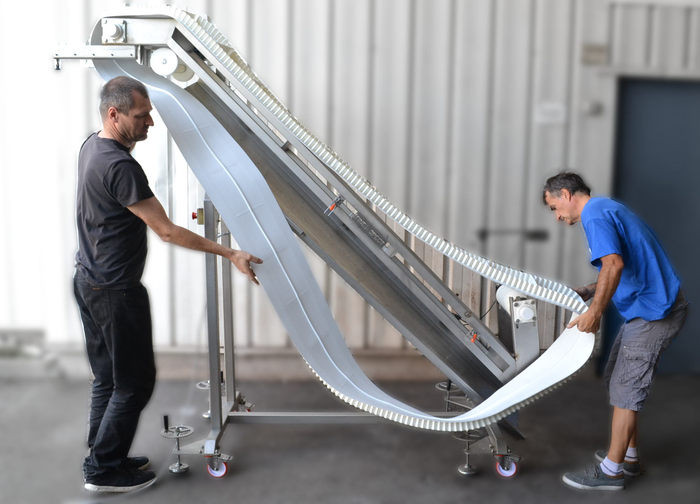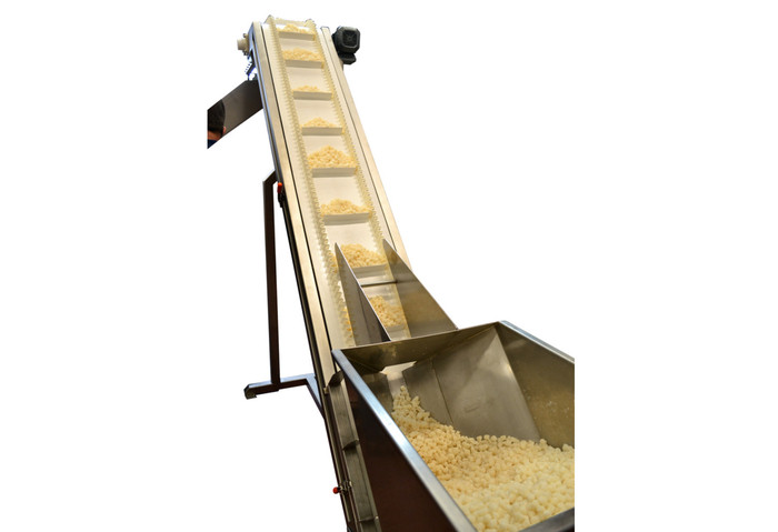 L'élévateur à tasseaux tout inox pour l'agroalimentaire permet d’alimenter en hauteur les équipements de process :