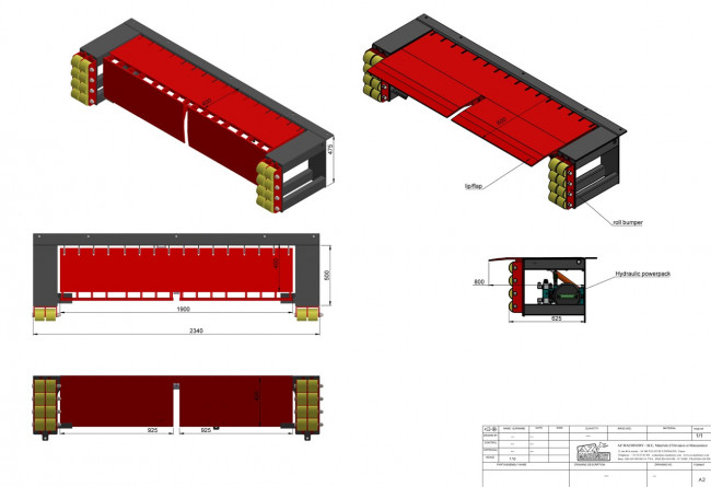 Longueur Lèvre : 400 + 400 mm, Épaisseur 13 mm.