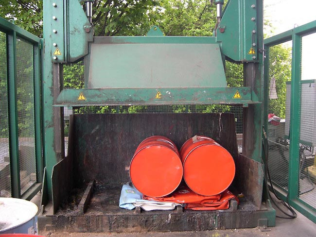 Compacter vos fûts métalliques jusqu'à 220 L en les réduisant sous forme de galettes inférieures à 10 cm.