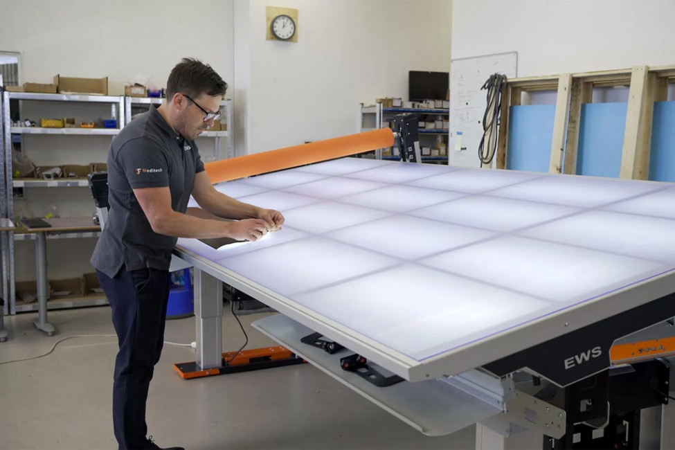 Rétroéclairage LED intégré sous la surface de travail pour une meilleure visibilité et un alignement plus précis des matériaux.