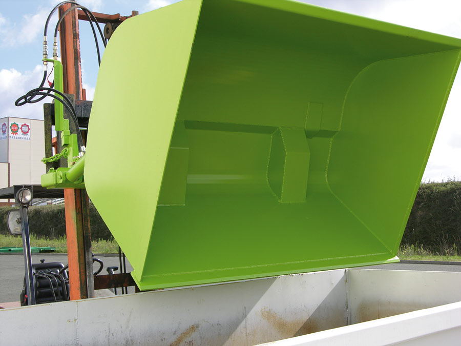- Godet facilitant le vidage intégral des produits au centre des bennes de camion.