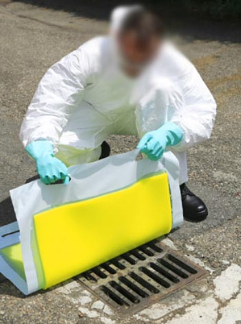 Elle permet de prévenir la pollution des canalisations et des réseaux lorsque survient un déversement de produits chimiques. Placée sur la grille de l'égout, elle vient boucher complètement la canalisation.