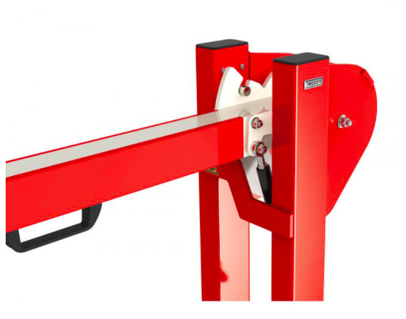 Cette barrière est ajustable en longueur (de 3 à 4 m) pour s'adapter à la largeur des voies et gérer le flux des véhicules.