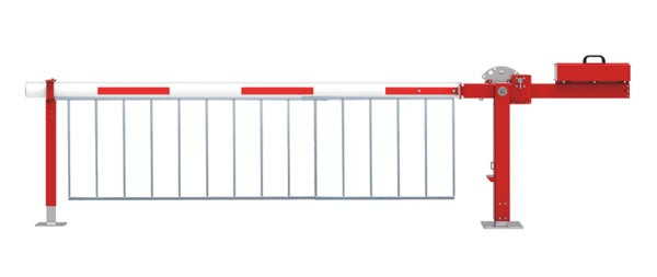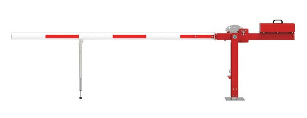 - une barrière levante manuelle avec contrepoids d"une longueur de 5,50 m (couleur blanche et rouge)