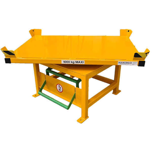 Je suis à la recherche d’une table pivotante manuelle capable d’accueillir une palette 100 × 120 cm et de supporter une charge maximale d’environ 1200 kg.