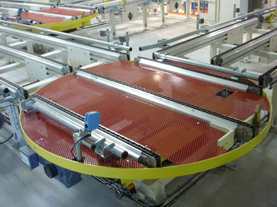 Type de convoyeur installé sur le socle pivotant : - Convoyeur à rouleaux motorisé - Convoyeur à chaînes motorisé - Tables à galets motorisé