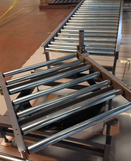 - Convoyeur à rouleaux moteur 24v CC monté sur une plaque tournante motorisée
