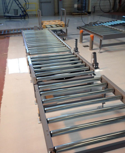 recherche une solution de ligne de conditionnement sur convoyeur à rouleau libre avec au milieu un plateau tournant . le but est de réaliser le conditionnement qui se fera sur palette que d"un seul côté de la ligne. La ligne ferait 8 m de longueur, en 3 tronçons: une entrée 3,25 m de longueur largeur 0,9, un plateau tournant de 1,5 m longueur et 0,9 m de largeur et une sortie: 3,25 m et 0,9 m de largeur. Charge admissible : 600 kg au mètre Hauteur total la ligne 300 mm.