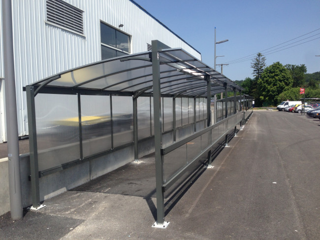 Dans le cadre d"un projet de sécurisation d"un stationnement d"usine à Montréal (Qc, Canada), nous souhaitons proposer à notre client l"installation d"un abris recouvrant le circuit piétonnier. Cet abris doit être résistant à la neige.