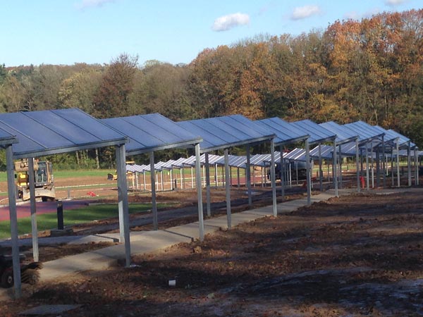 Demande de prix et délai pour la fourniture , pose et livraison de 2 passages couverts de 8.4m/3.4m et 9.45/3.5m en forme de dôme avec gouttière toiture en polycarbonate laqué blanc .