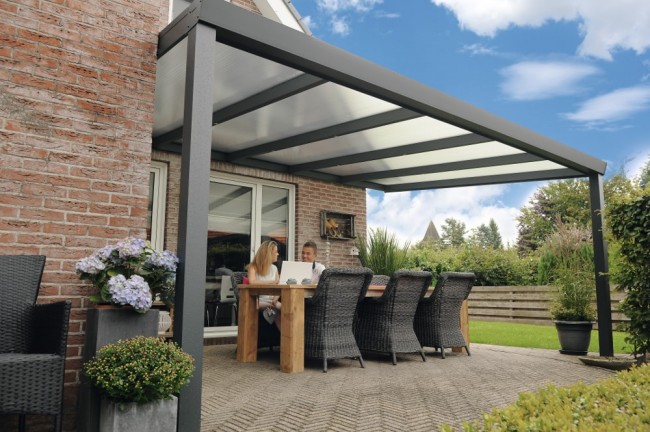 Toiture polycarbonate opale.