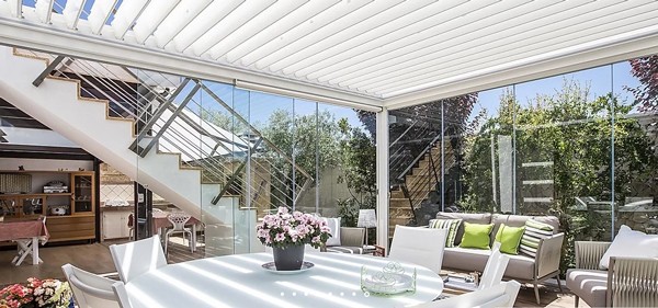 En fonction de l'ouverture ou la fermeture des lames, ces pergolas permettent de profiter du beau temps tout en étant à l'abri des intempéries.
