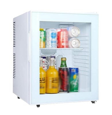 Ce minibar blanc avec porte vitrée est un réfrigérateur conçu pour la conservation de toutes sortes de boissons.