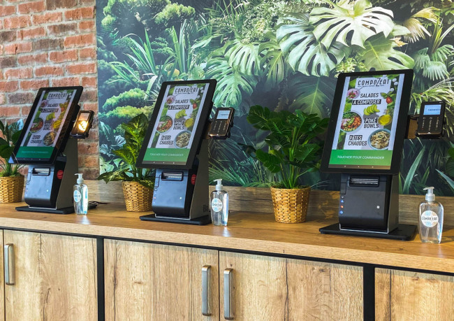 - Borne de commande tactile disponible en 15" ou 22". L'installation se fait sur comptoir ou support au sol.