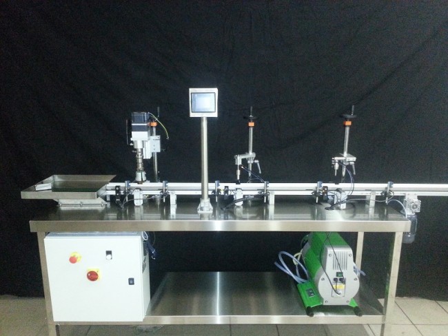 Sa conception se fait en sur mesure en fonction de vos cahiers de charges pour des flacons de 5ml, de 10ml, de 20ml ou 30ml avec une cadence allant jusqu'à 600 flacons par heure.