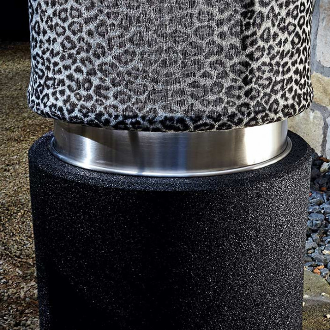 Un objet de conception lumineuse d'extérieur ou d'intérieur, un effet des plus harmonieux et chic que son abat jour élancé avec une toile style léopard, sa base anthracite est lourde pour lui offrir une grande stabilité lors d'utilisation extérieure.