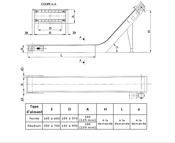 Ce convoyeur magnétiqueest bien étudié pour le transport de copeaux (avec ou sans liquide), de pièces ou de chutes de découpe.