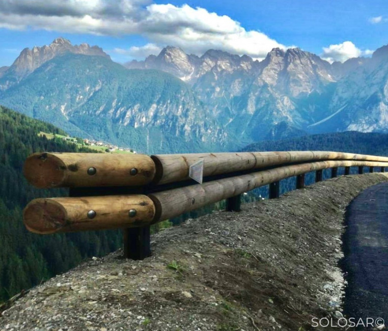- Une lisse métallique double ondes recouverte d'un habillage bois de 2 demi-rondins de bois en pin autoclavé cl. 4 de section Ø160mm.