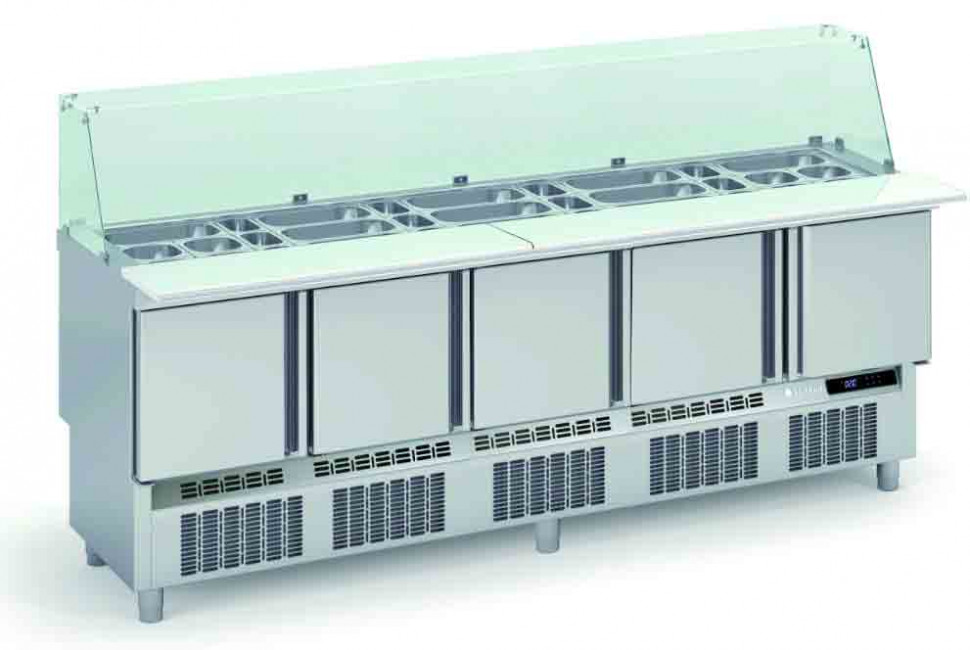 Meuble de préparation 700 positif 5 portes - 430 L - L.2275 x P.700 x H.890 mm