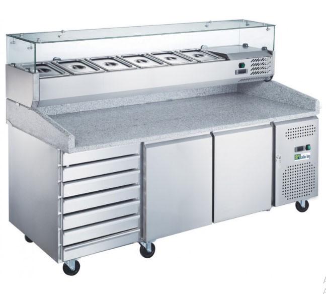 Meuble à pizza avec vitrine réfrigérée et tiroirs à pâton