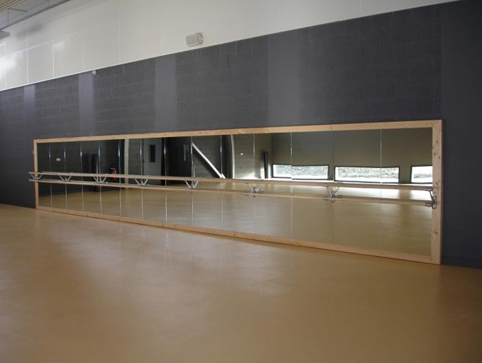 Nous aimerions aménager une salle afin qu"elle puisse servir à une activité danse. Nous aurions besoin de miroirs pour une longueur de 7m. Ceux-ci seraient à fixer au mur avec de la colle ou des vis. De plus il serait bon que les miroirs aient le moins de reflets possible.