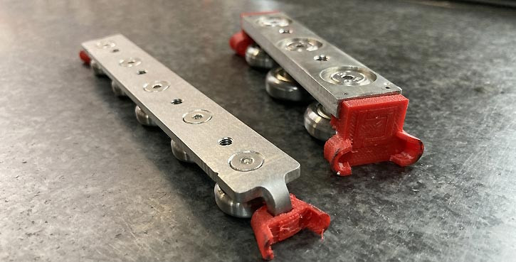 La conception compacte permet une fixation directe des galets à la pièce mobile, sans besoin de curseur.