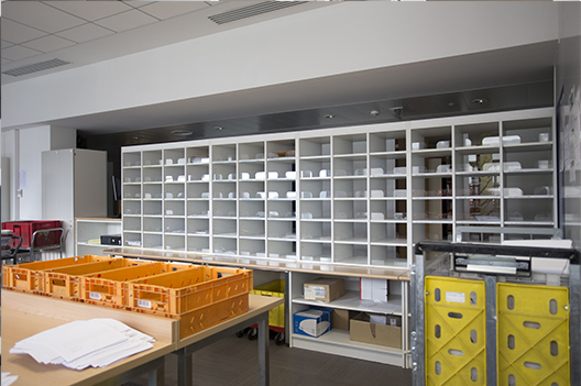La distribution est effectuée dans un ensemble de cases qui peuvent être ouvertes ou fermées par des portes individuelles.