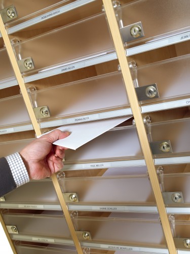 je cherche un casier mural de distribution de courrier pour 15 personnes.