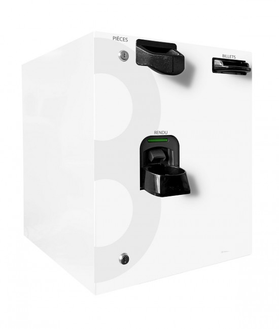 Il permet un traitement rapide des pièces et des billets, avec une capacité de stockage importante, en faisant un allié idéal pour les commerces nécessitant un système de paiement automatisé, fiable et sécurisé.