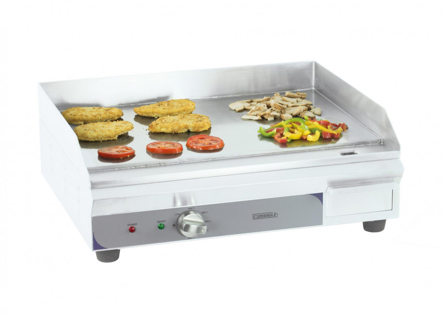 Cette plaque de cuisson est munie d’un bac de récupération des graisses et d’un thermostat de sécurité.