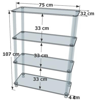 4 étages de 75x32cm espacés de 33cm