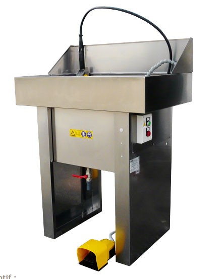 Cette fontaine de nettoyage des salissures est équipée d'un bac dédié au trempage, d'une brosse de lavage ainsi que d'un performant système de filtration par panier filtrant au centre de la table de travail.