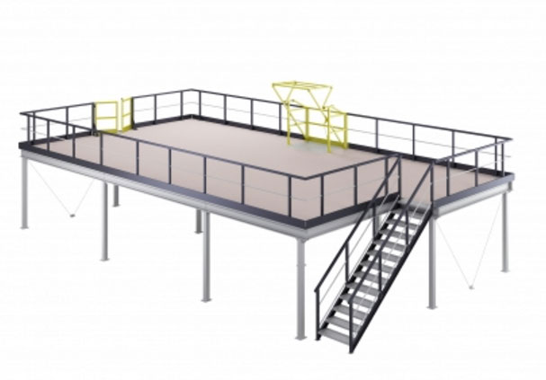 Nous avons besoin pour un salon professionnel d"une mezzanine de 36 m² (6 x 6 m), finition aluminium finition anodisée. Plateforme pouvant supporter une charge de 500 kg / m², plancher en contreplaqué épaisseur 40 mm, garde corps au pourtour avec remplissage PMMA incolore de 8 mm. 1 escalier largeur 1200, 17 marches avec garde corps acier, remplissage des marches en mélaminé. Merci d"avance pour votre retour. Cordialement