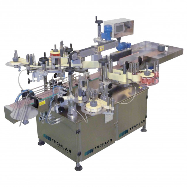 Cette étiqueteuse recto verso automatique est équipée de deux têtes de pose latérales réglables positionnées face à face.