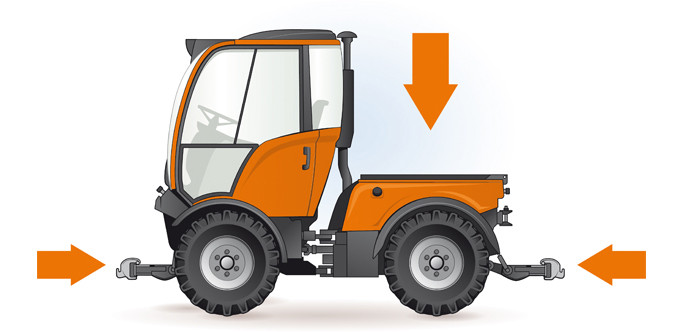 Ce véhicule porte-outils est conçu pour l'entretien des espaces verts jusqu'au service hivernal.