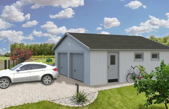 Ce garage de jardin en bois est conçu pour recevoir deux voitures au maximum.