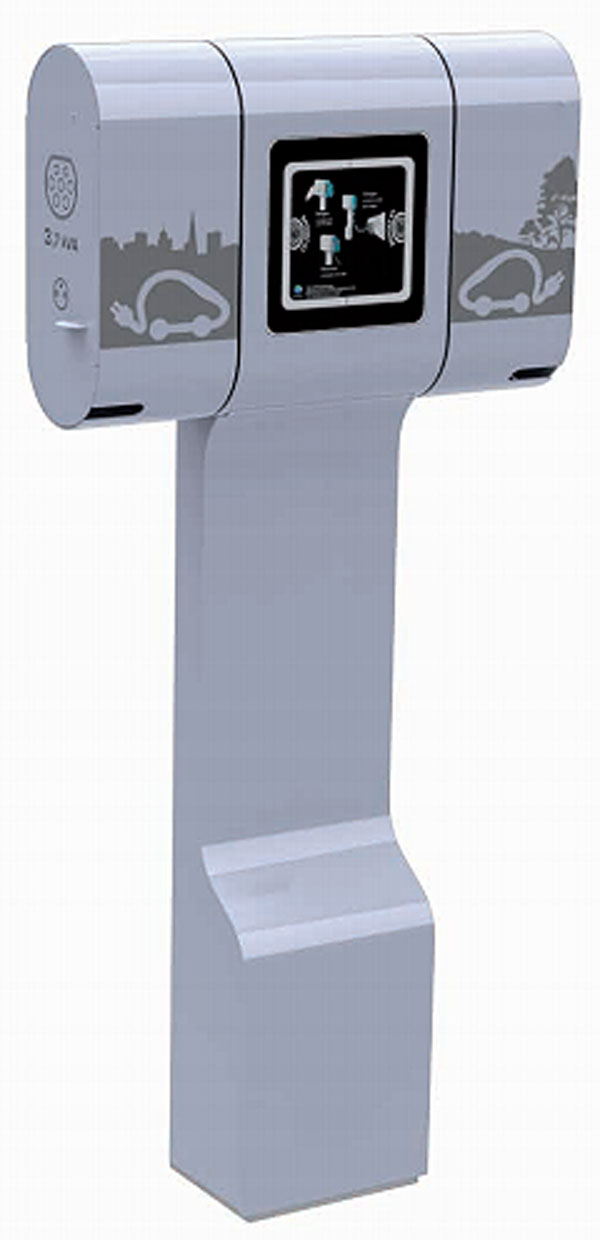 La borne de recharge véhicules électriques est idéale pour la recharge des véhicules électriques dans les lieux publics ou semi publics (parkings non surveillés). Elle est compatible avec tous les véhicules électriques du marché grâce à sa diversité de prises et garantit une sécurité totale de la personne et du véhicule pendant la recharge. Cette borne est une solution clé en main. Elle est à la fois simple à utiliser pour le conducteur grâce à son panneau explicatif intégré, et simple à gérer pour le gestionnaire et mainteneur grâce à son système de gestion à distance.