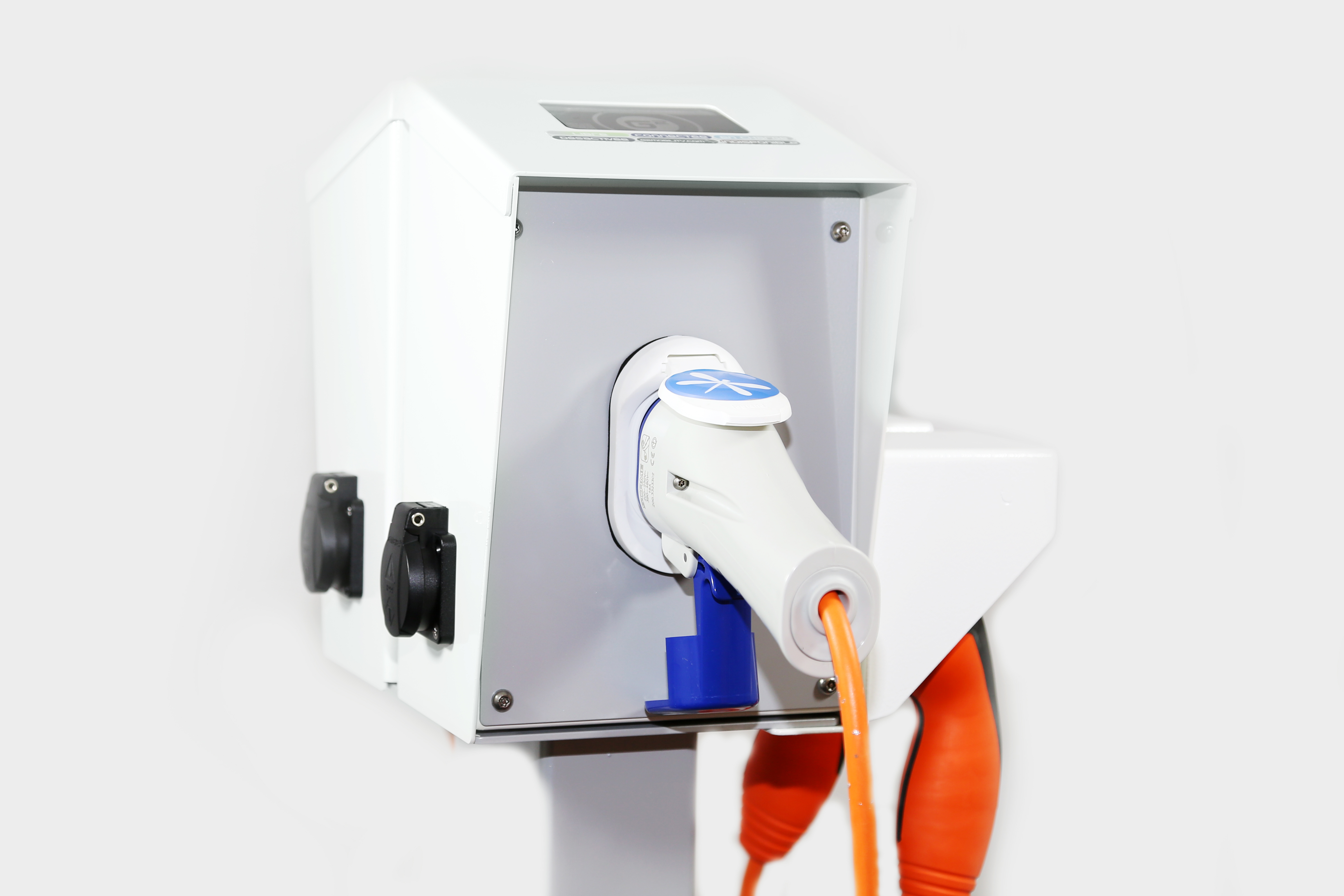 - Ajout d’une prise domestique E/F : pour recharger les petits véhicules électriques type vélo/scooter, et les usagers venant avec un câble mode 2