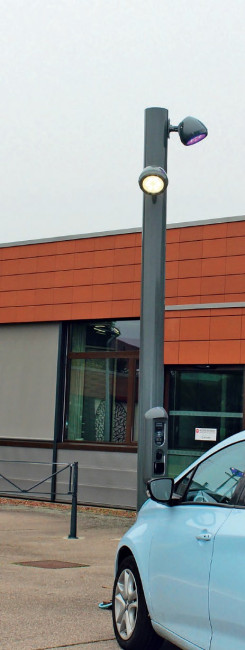 Ce luminaire est un mât d’éclairage intégrant totalement un point de charge pour la recharge de véhicules électriques 4 et 2 roues.