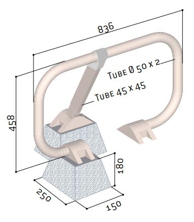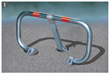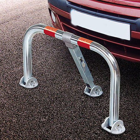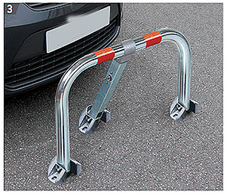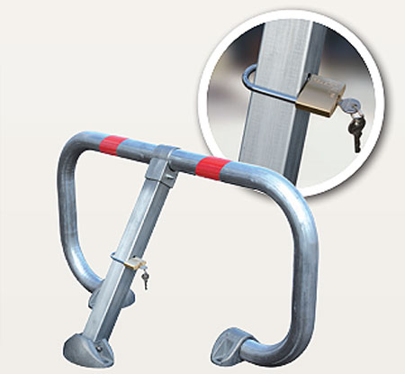 Fourniture de dispositif type bloque parc avec serrure de verouillage et de 3 clés ,fixation chevillée sur massifs béton.
