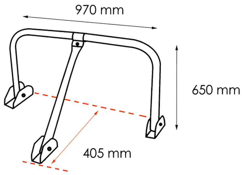 Réf. TC : 764571135Arceau de parking avec amortisseurs 970 x 405 x 650 Pompiers 11 mm Jaune 16
