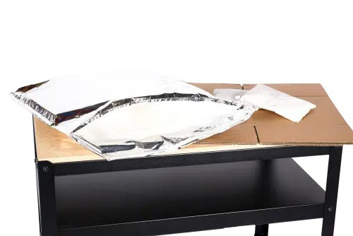 - La pochette isotherme est un élément souple livré à plat et qui prend forme dans votre caisse carton d’un simple coup de main.