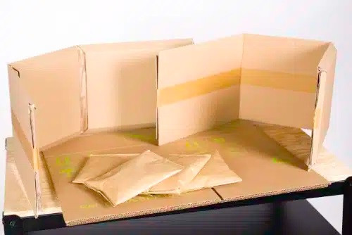 - En effet, l’isolation thermique se fait par l’association de deux coques en carton de 20 mm d’épaisseur rembourrées par une multicouche de papier isolant et de papier Kraft.