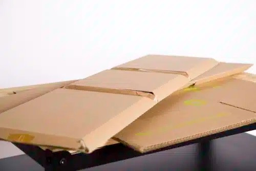 - Les emballages sont livrés à plat ce qui permet un réel gain de place de stockage dans les entrepôts ou boutiques.