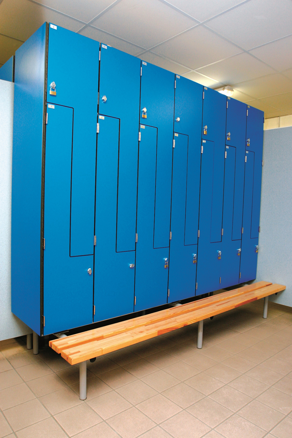 Notre armoire collectivités stratifiée en Z est destinée à l’aménagement des espaces vestiaires.