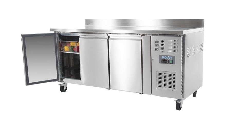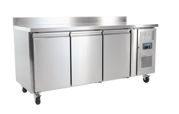 table réfrigérée positive avec 3 portes et un dossier, une solution de stockage fiable pour vos produits de grande valeur.