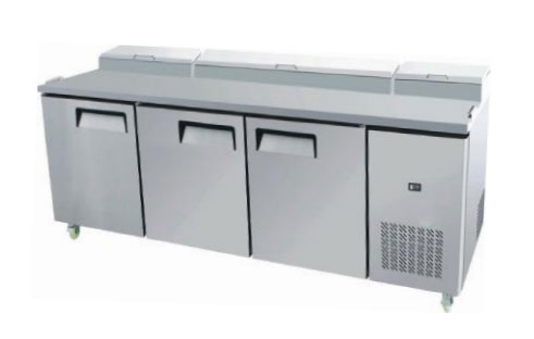 La table réfrigérée à trois portes pour préparation de gamme américaine est destinée aux professionnels de la restauration.