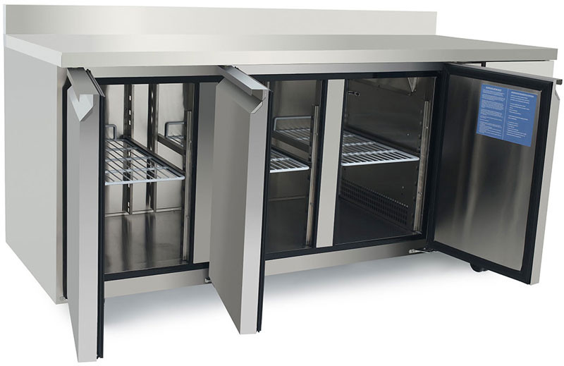 Cette table réfrigérée GN1/1 avec dosseret est conçue pour les spécialistes de cuisine (Restaurant, Hôtels, Snack, Fastfood…)